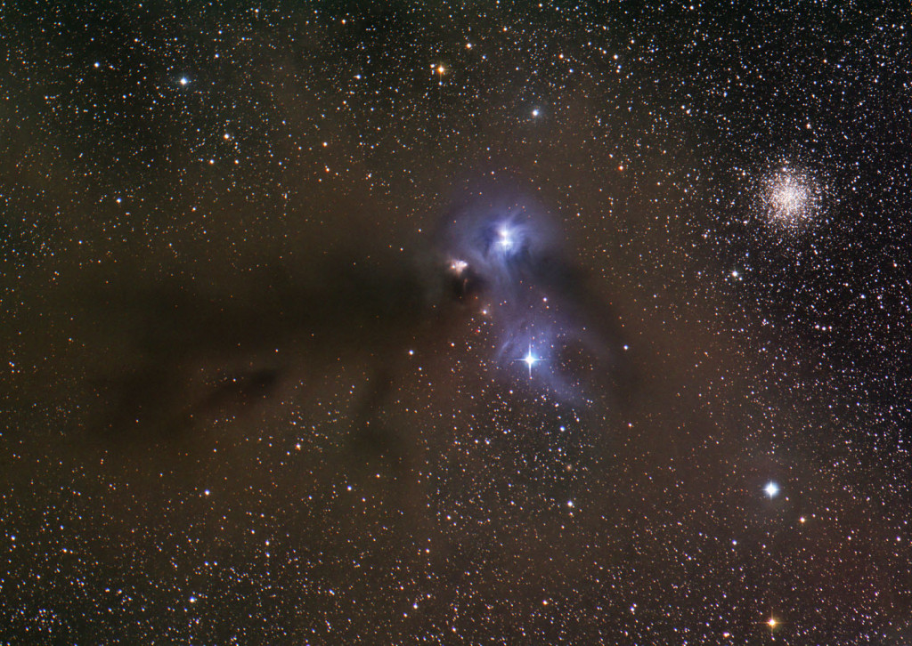 Corona Australis Dust Cloud Bernes 157 with Reflection Nebulae NGC 6726-29 and Globular Cluster NGC 6723