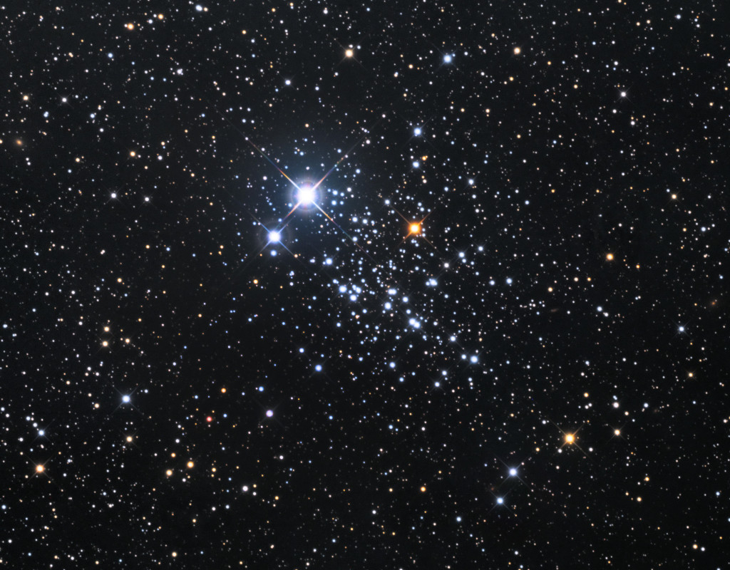 I put together a quickie ET Cluster image I shot during late January, 2013 in poor seeing. I am not real happy with it as I think I processed my luminance stars too hot before layering on the RGB. Therefore, the LRGB stars are a bit too burned, not smooth and I lost some of the subtle blue star coloration. I’ll reprocess with less aggressive Lum in the future. Look closely and you will see some galaxies between the cluster stars.