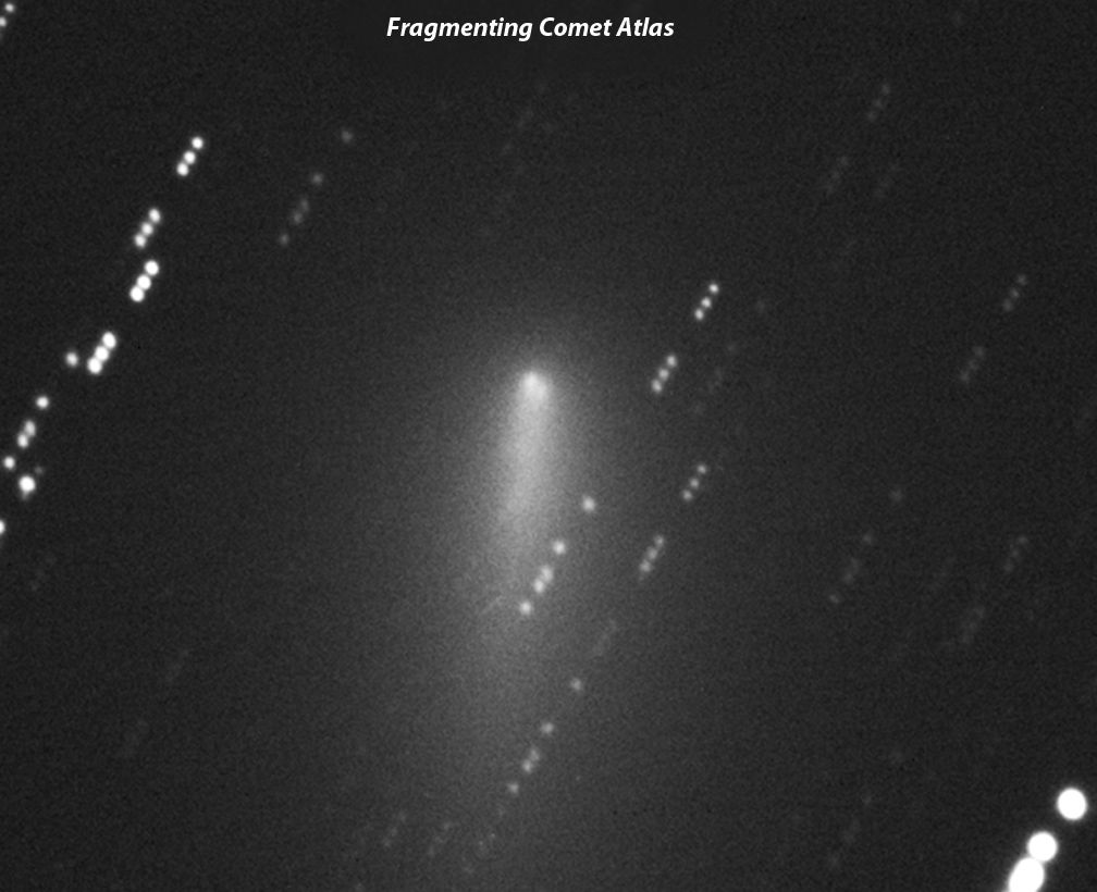 Above: Disintegrating Comet Atlas at Moments of Good Seeing (Arrows)